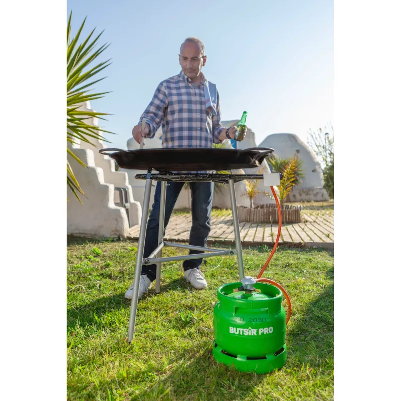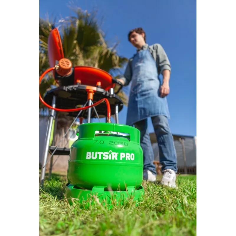 Botella cargada con de 5 kg de gas propano, única botella de propano de este tamaño del mercado nacional. Envase ergonómico, para moverla con facilidad. Por sus dimensiones, potencia y poder calorífico BUTSIR PRO es la única botella del mercado recomendada para utilizar con los Fuegos de Jardín de BUTSIR.