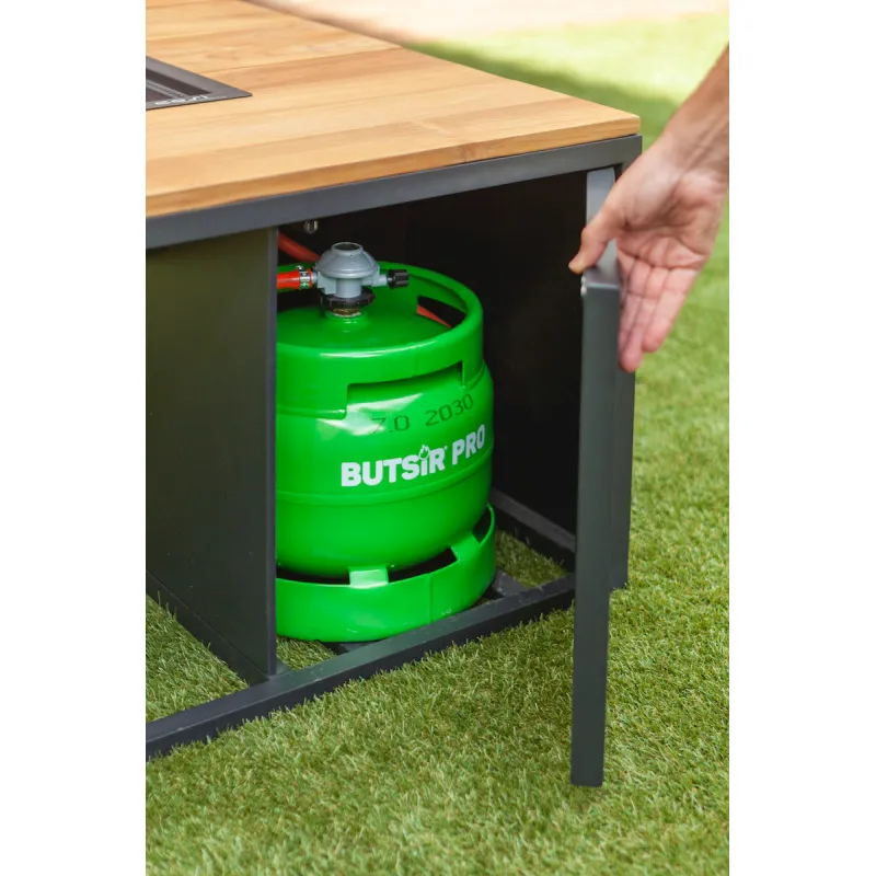 - Las mesas calefactoras y la chimenea de exterior de Butsir funcionan únicamente con la botella Butsir Pro de 5 kg.
