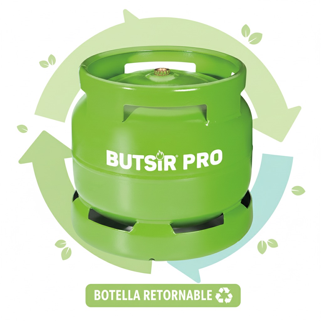 Recuerda que todas las botellas BUTSIR PRO son retornables. Puedes intercambiar el envase vacío por una botella llena en los puntos de venta de gas BUTSIR y sólo se te cobrará el precio de la carga, que en nuestro caso son: 28€.