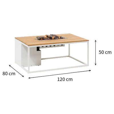 Mesa de Fuego COSILOFT 120 BLANCO CON TECA + BOTELLA GAS + CRISTAL PROTECTOR + REGULADOR