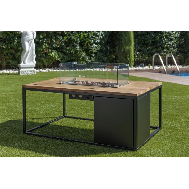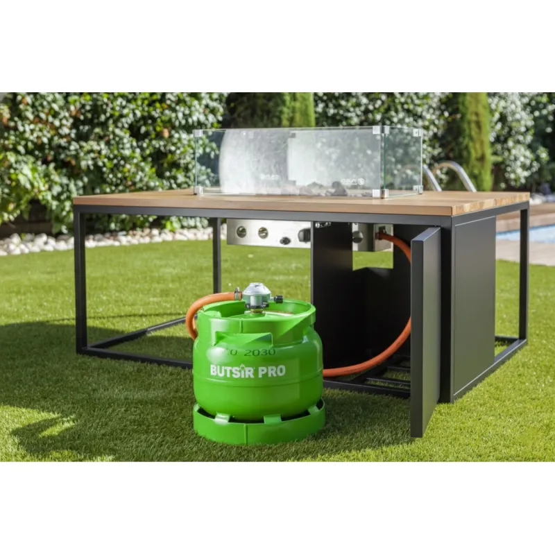 Mesa de Fuego COSILOFT 120 NEGRO CON TECA + BOTELLA GAS + CRISTAL PROTECTOR + REGULADOR