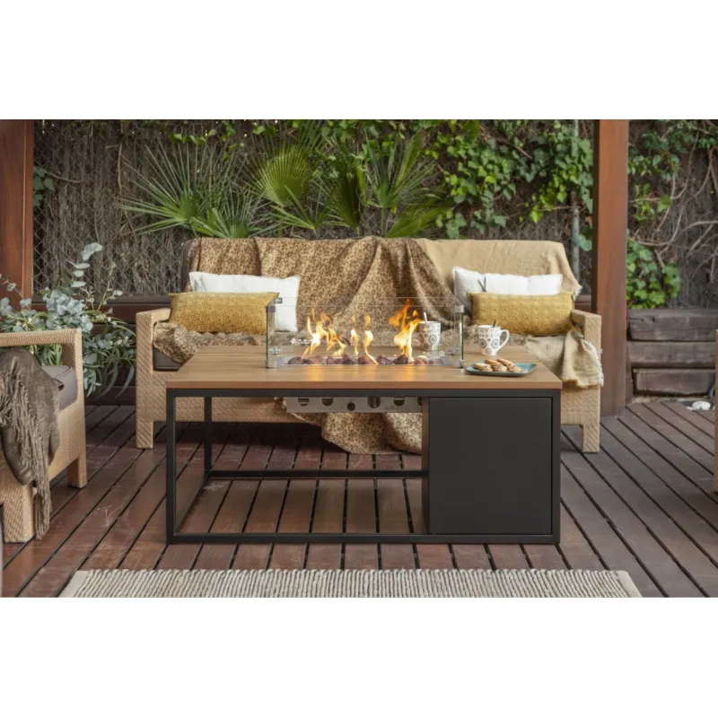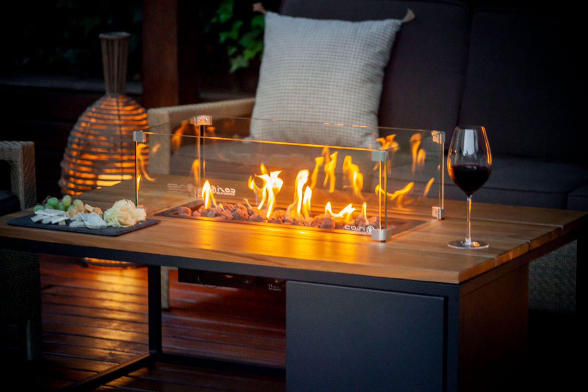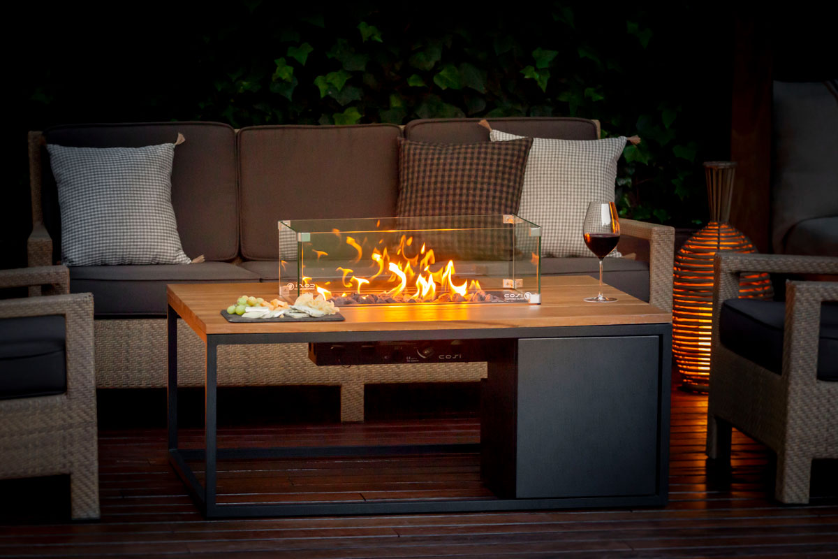 La mesa Cosiloft 120 redefine las veladas al aire libre con su fuego lineal y elegante, convirtiéndose en el punto focal perfecto para cualquier espacio exterior.