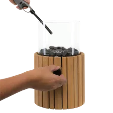 Timber es un farolillo a gas perfecto para crear un rincón acogedor en cualquier estancia. Su atractivo diseño realizado en madera de teca natural aporta un toque cálido y rústico a la decoración. Muy manejable y fácil de utilizar. Homologado para interiores y exteriores.