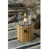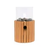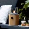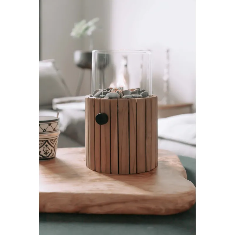 Fuego decorativo con llama vista Butsir Cosiscoop Timber fabricado en madera de teca natural, indicado para uso exterior. Incluye cristal protector resistente a altas temperaturas, piedras decorativas, regulador de temperatura y asa para facilitar su transporte.