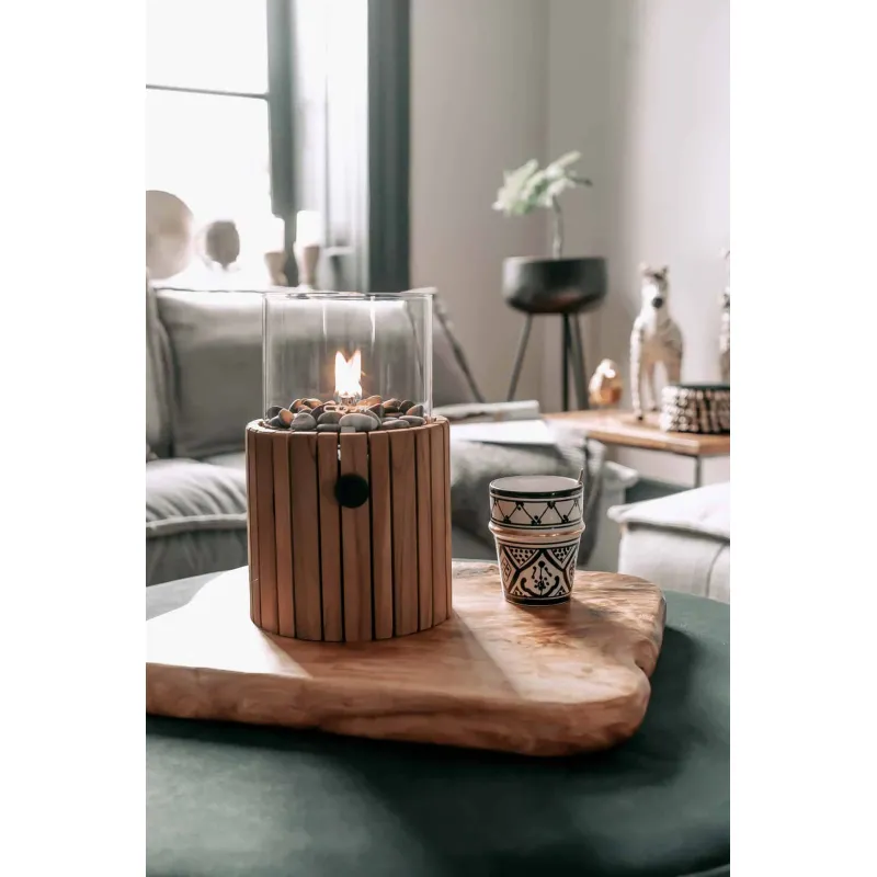 Timber es un farolillo a gas perfecto para crear un rincón acogedor en cualquier estancia. Su atractivo diseño realizado en madera de teca natural aporta un toque cálido y rústico a la decoración. Muy manejable y fácil de utilizar. Homologado para interiores y exteriores.