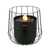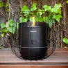 Fuego decorativo con llama vista Butsir Cosiscoop Basket fabricado en metal pintado de negro, indicado para uso exterior. Incluye cristal piedras decorativas, regulador de temperatura y malla metálica que aporta un diseño único y protege de la llama.