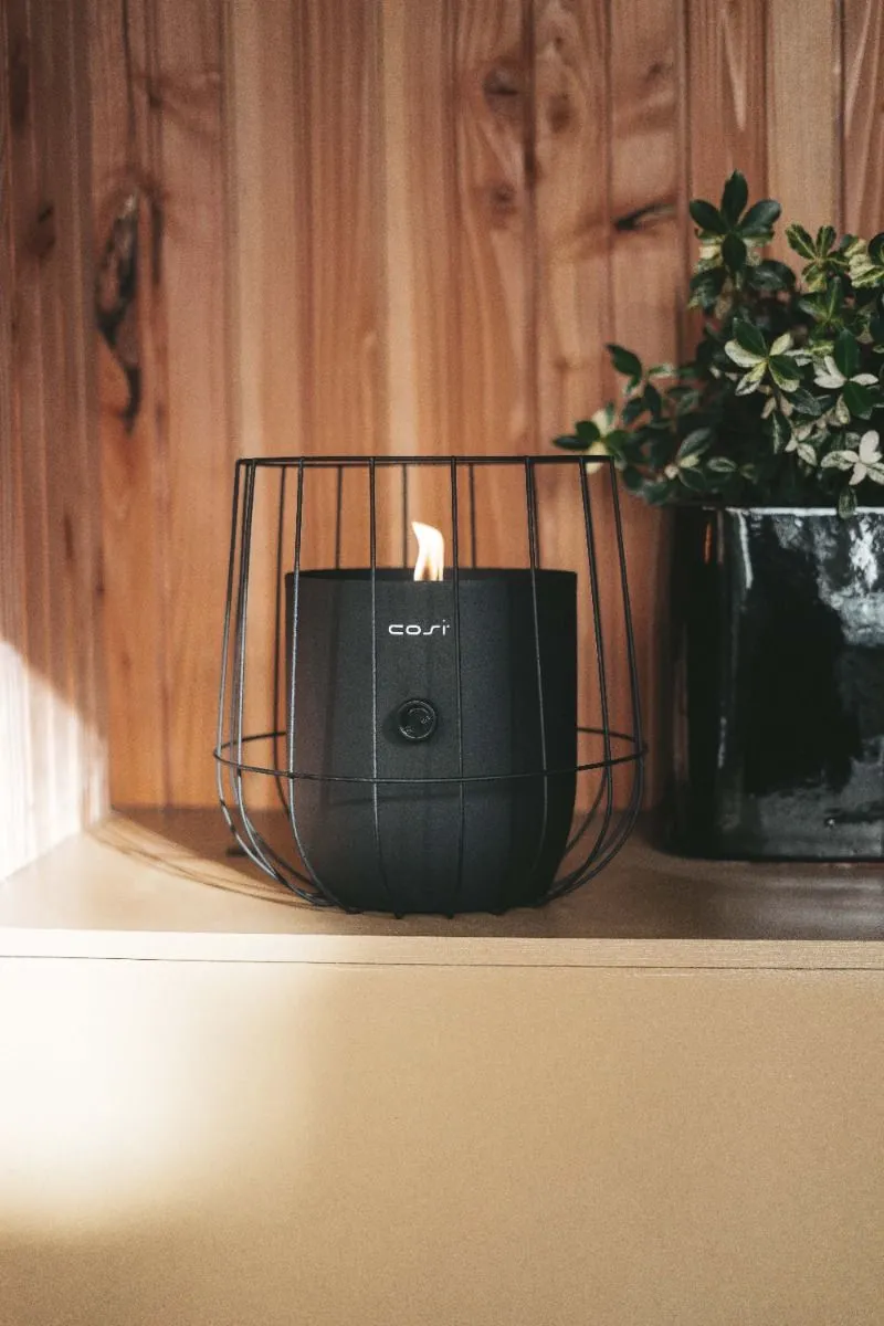 Mucho más que un fuego de sobremesa, Cosiscoop Basket atrae siempre las miradas en terrazas y jardines.