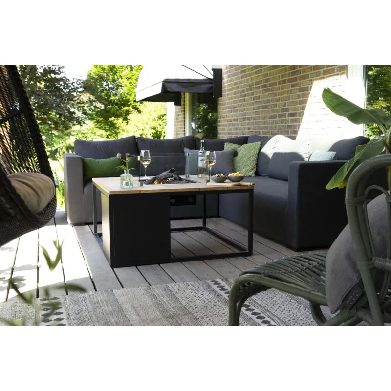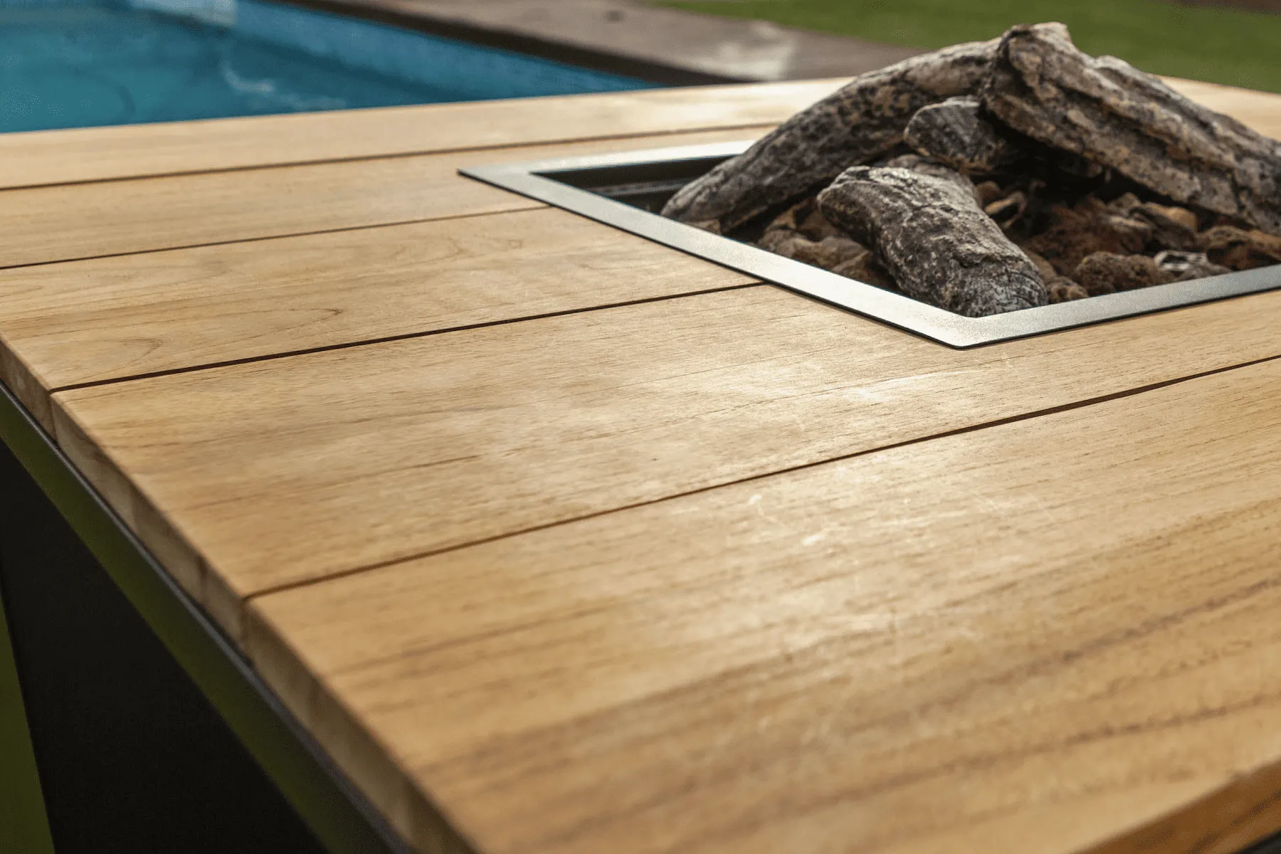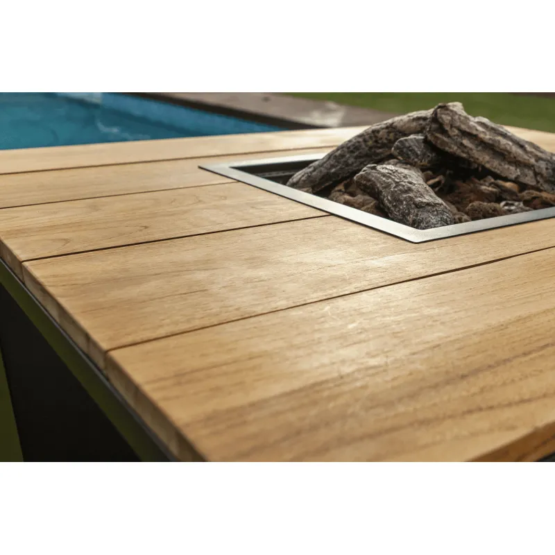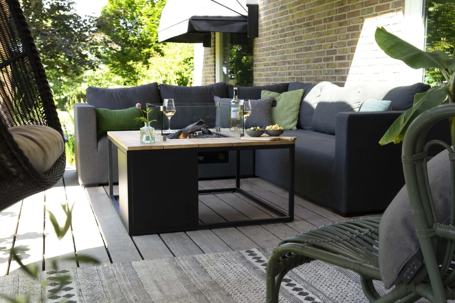 La mesa Cosiloft 100 redefine las veladas al aire libre con su fuego lineal y elegante, convirtiéndose en el punto focal perfecto para cualquier espacio exterior.