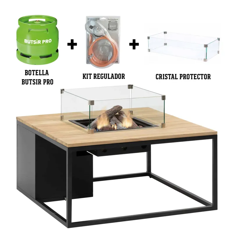 Mesa de Fuego COSILOFT 100 NEGRO CON TECA + BOTELLA GAS + CRISTAL PROTECTOR + REGULADOR