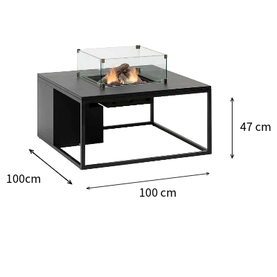 Mesa de Fuego COSILOFT 100 CON ALUMINIO NEGRO + BOTELLA GAS + CRISTAL PROTECTOR + REGULADOR