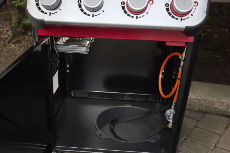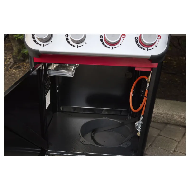 La nueva Weber Spirit E-425 presenta un rediseño del carro cerrado, equipado con una práctica puerta que proporciona un espacio seguro para almacenar bombonas de gas de 6 o 12 kg. Este diseño no solo mantiene el área de cocción organizada, sino que también protege el depósito de las inclemencias del tiempo. Además, el carro cuenta con dos ruedas resistentes que permiten mover la barbacoa con facilidad, asegurando comodidad y estabilidad en cualquier terreno. Una solución práctica y elegante para disfrutar al máximo de tus parrilladas.